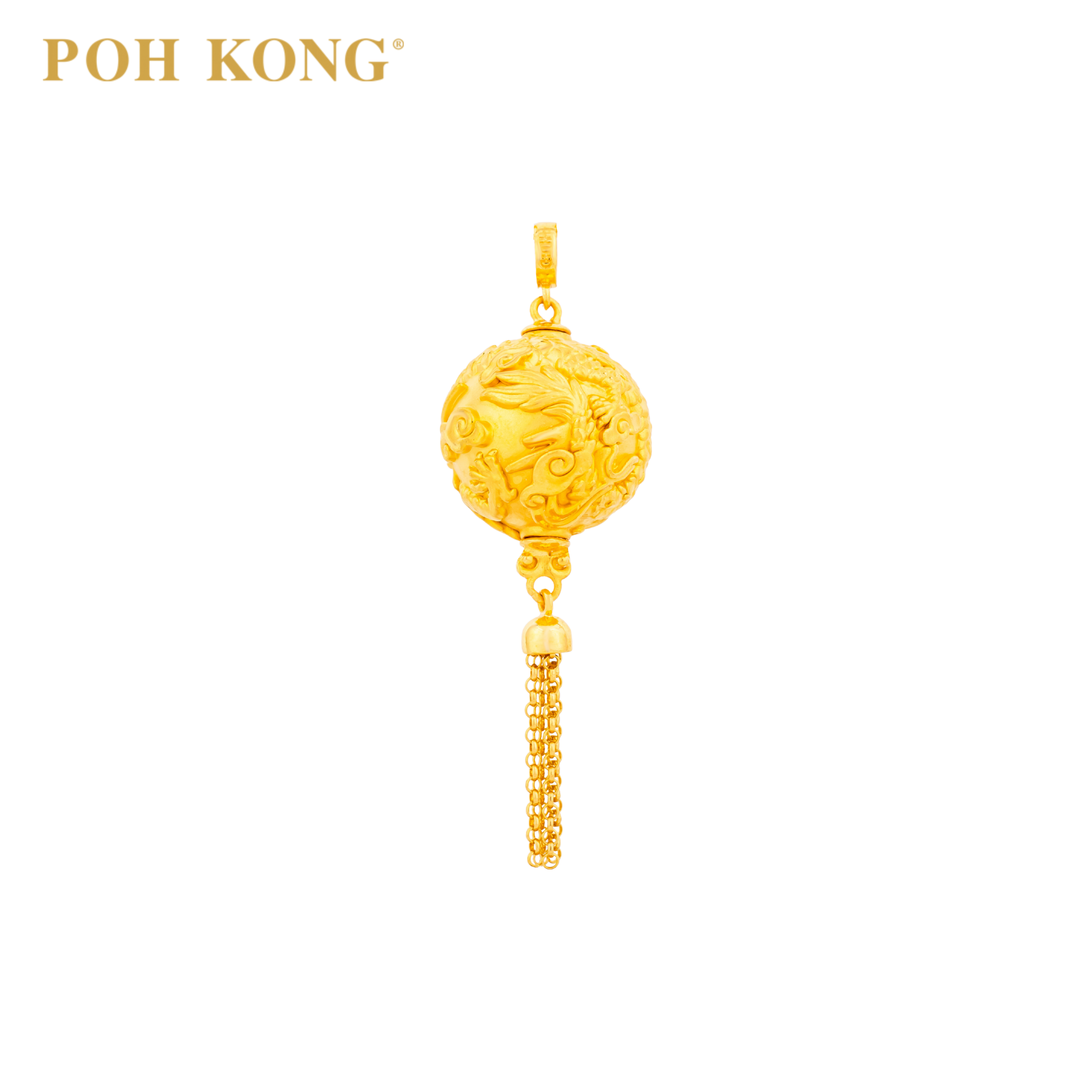 POH KONG 916/22K Yellow Gold Happy Love Fortune Cloud Dragon Tassel Pendant