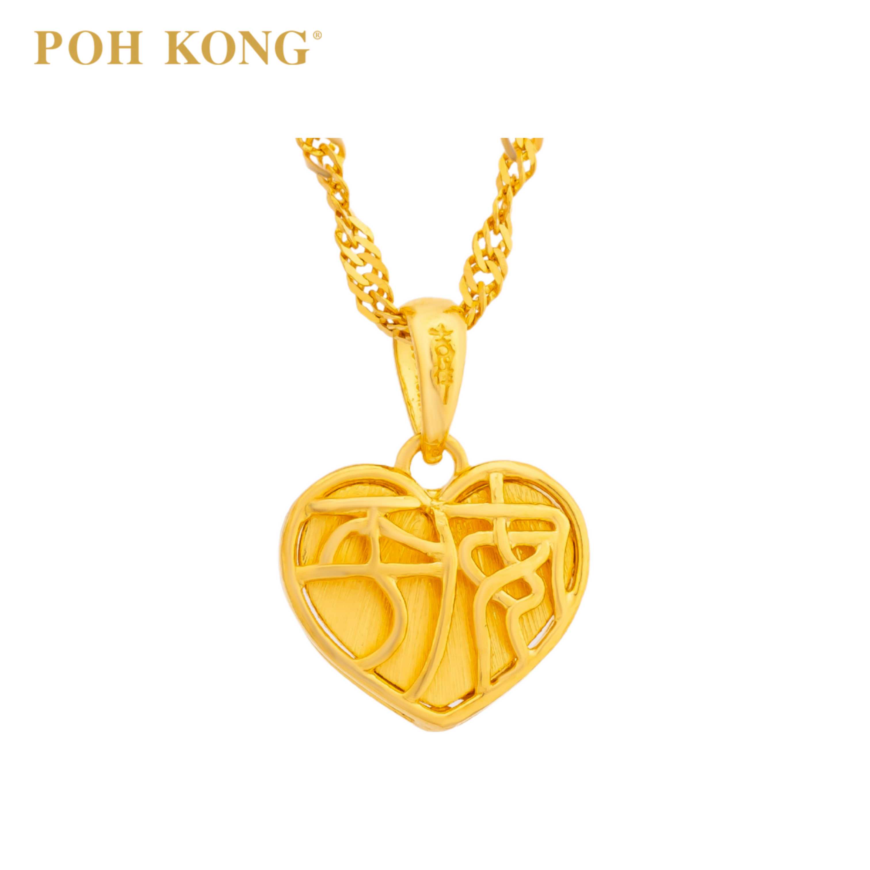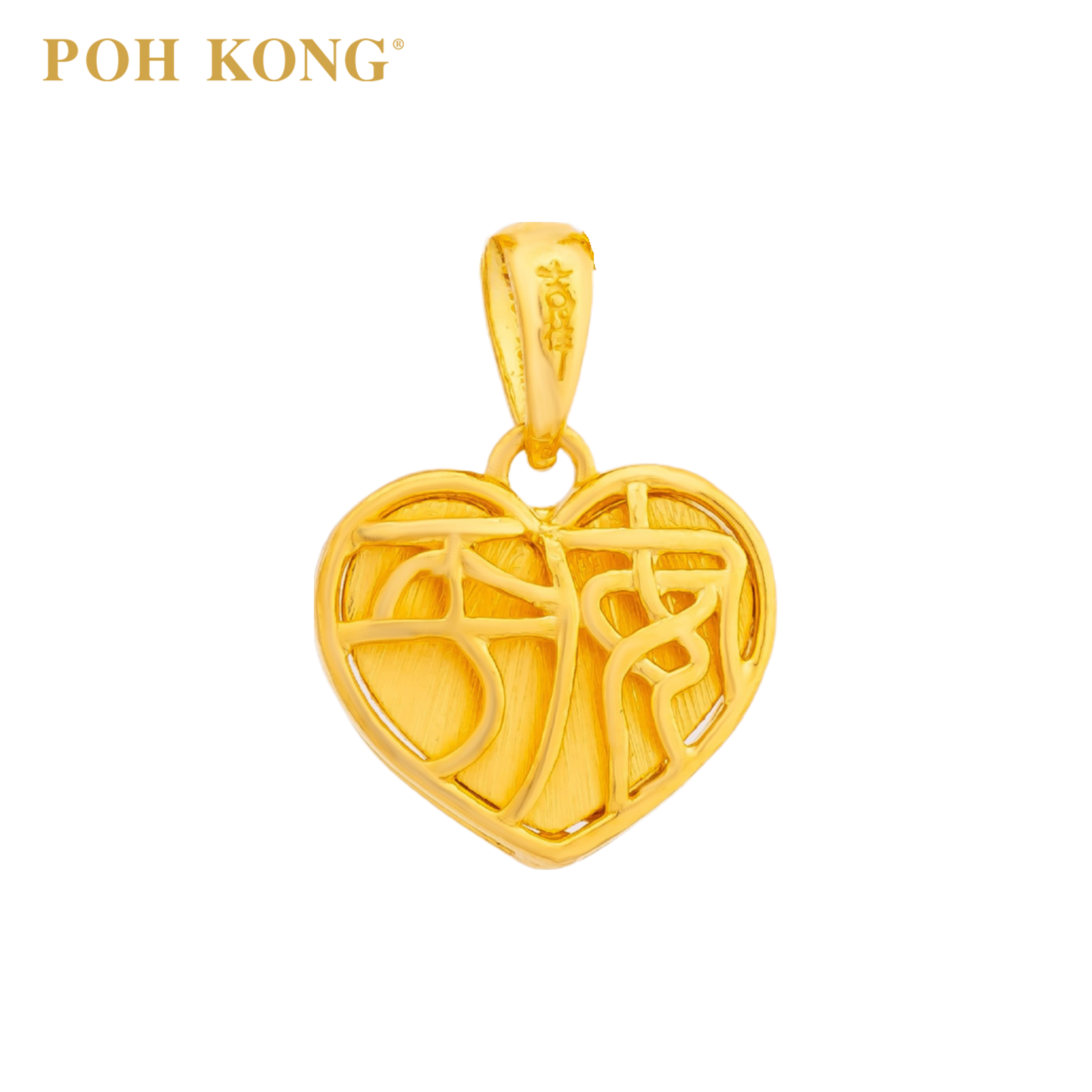 POH KONG 916/22K Gold Auspicious Heart & Luck Pendant