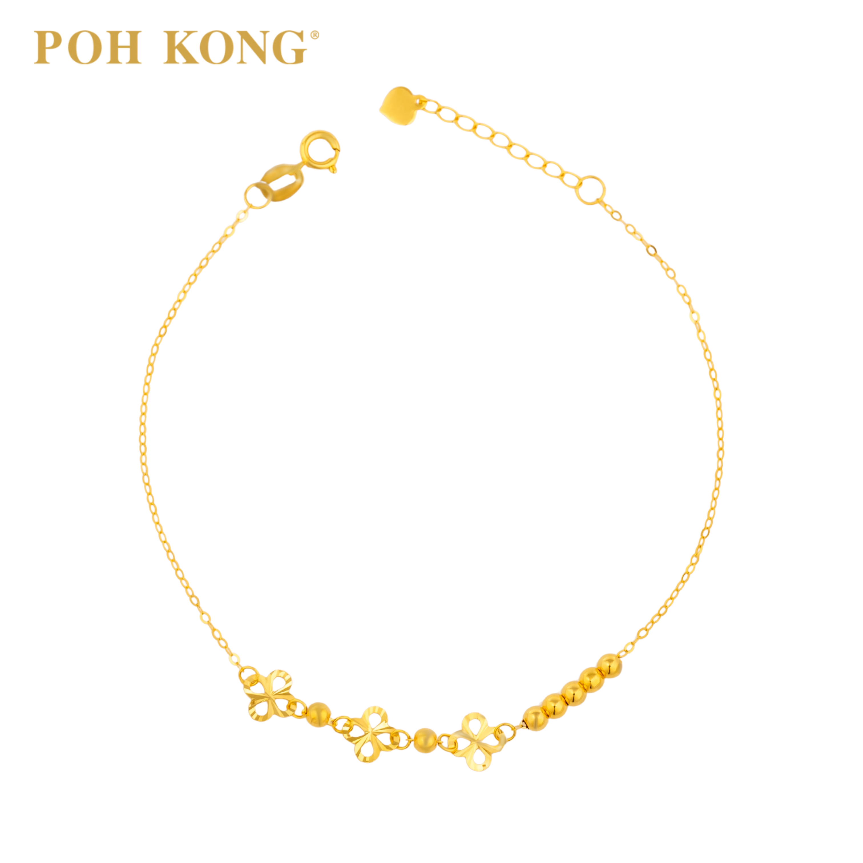 POH KONG 750/18K Yellow Gold Four Leaf Clover With Beads Bracelet