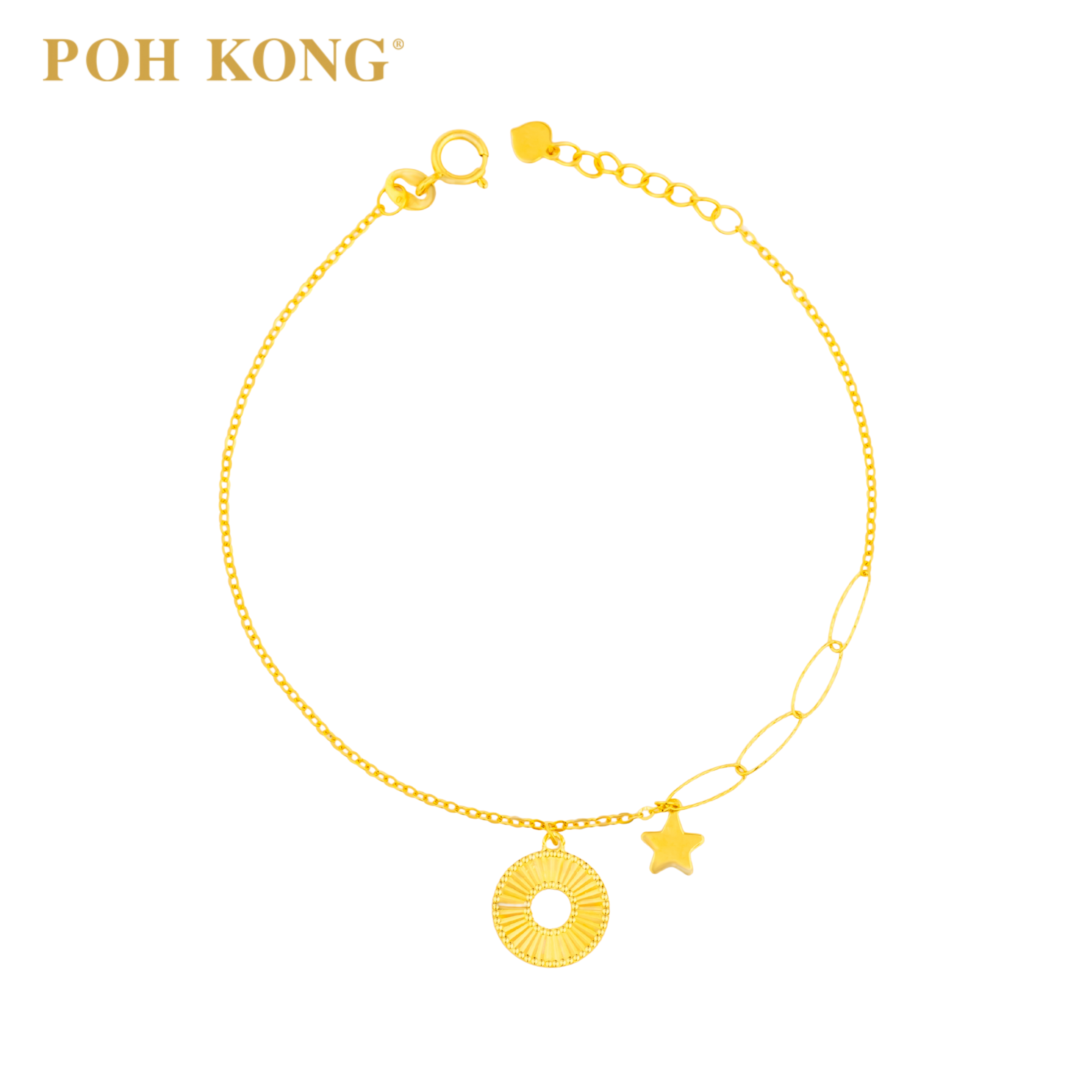 POH KONG 750/18K Yellow Gold Textured Circle and Star Bracelet