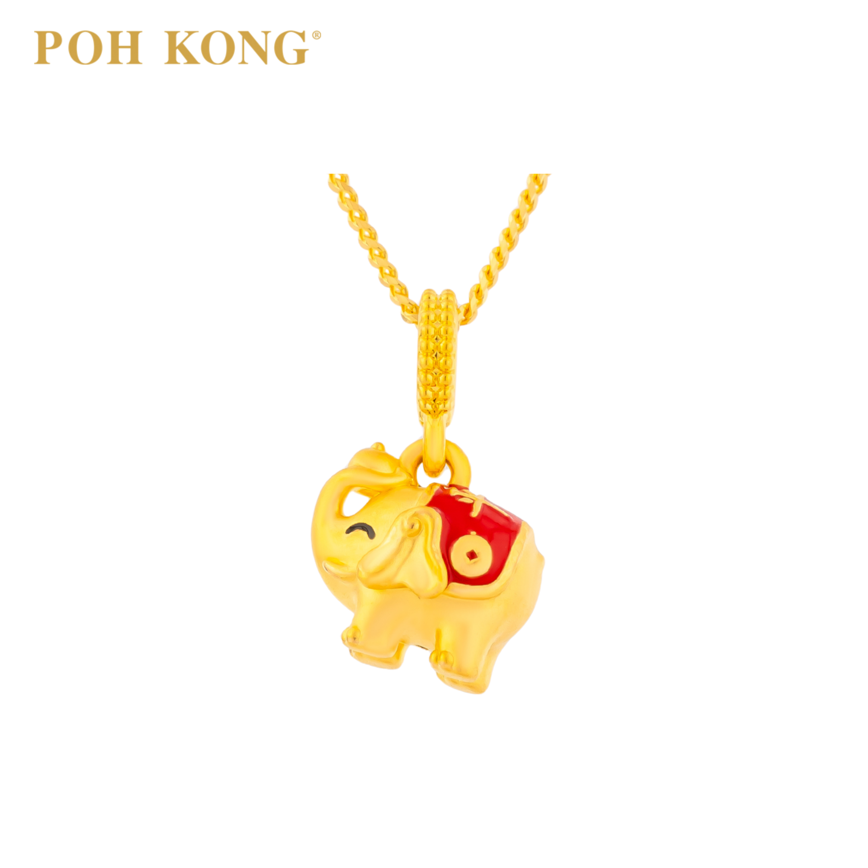 POH KONG 916/22K Yellow Gold "PingAn" Elephant Pendant