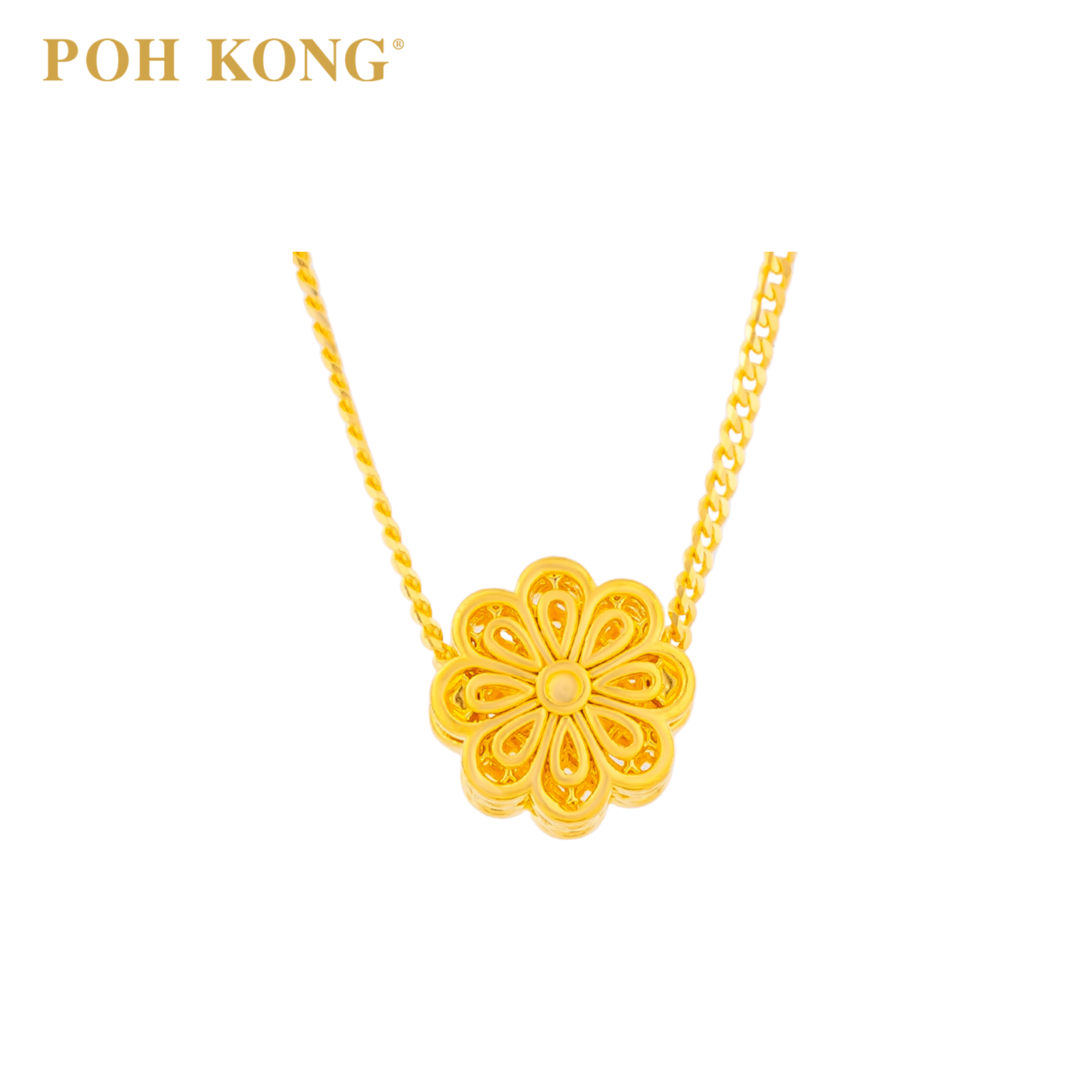 POH KONG 916/22K Yellow Gold Anggun Round Shape With Orchid Pendant