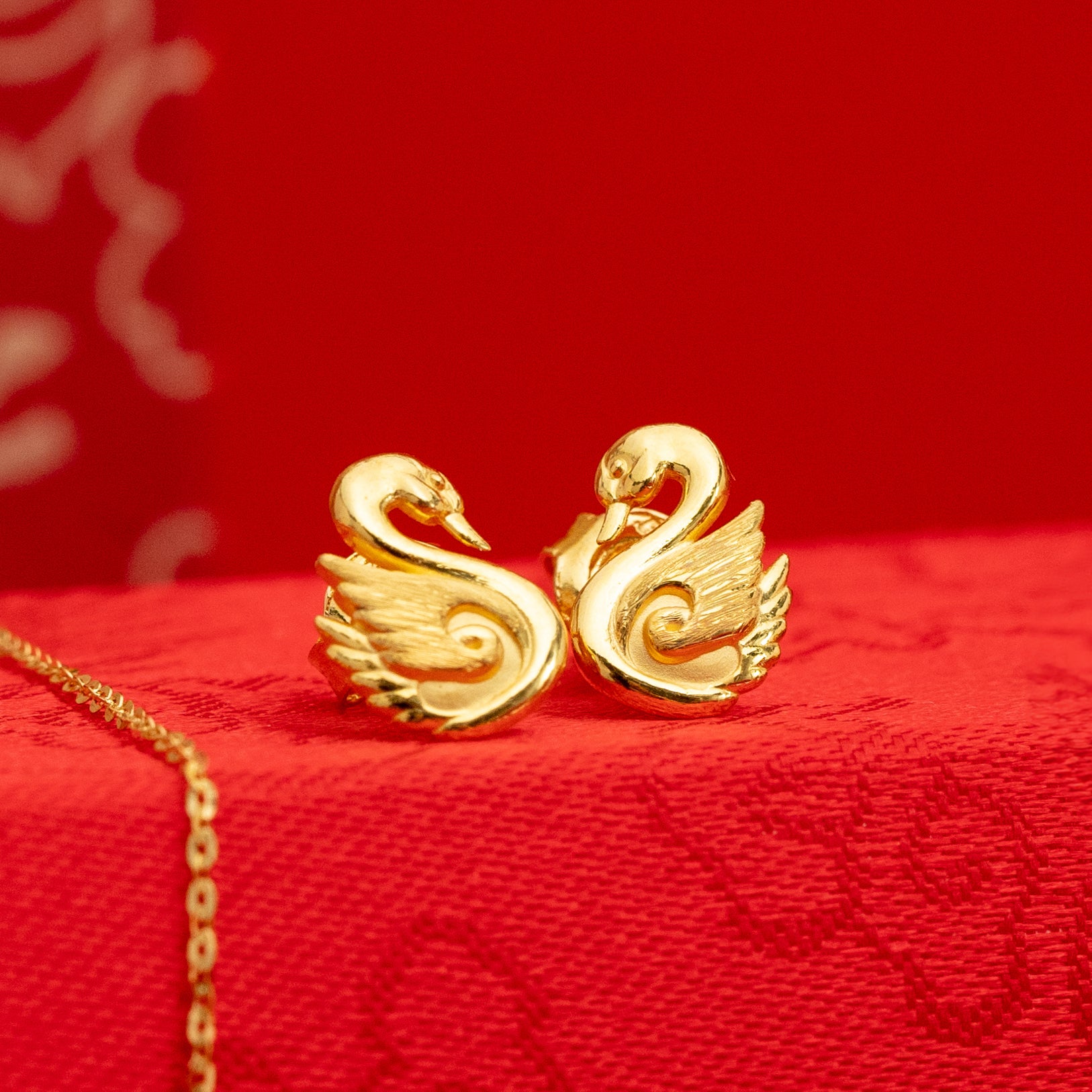POH KONG 916/22K Gold Happy Love Elegant Swan Earrings