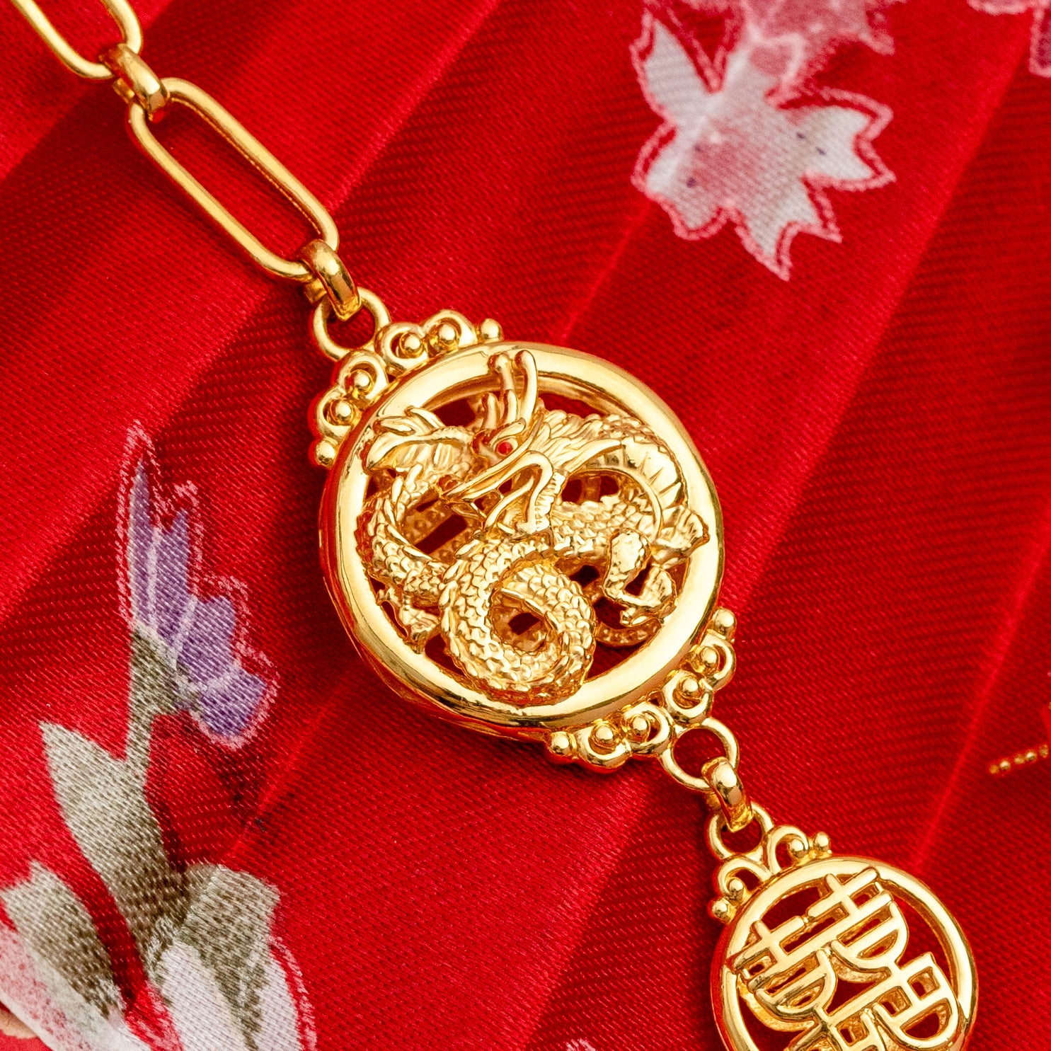 This jewellery collection designed around the theme of the dragon and phoenix, auspicious symbols that witness the perfect union of a couple. Along with the circular "double happiness" and "prosperity" motifs, which symbolize complete happiness, it conveys the beautiful aspiration of growing old together in happiness and harmony.