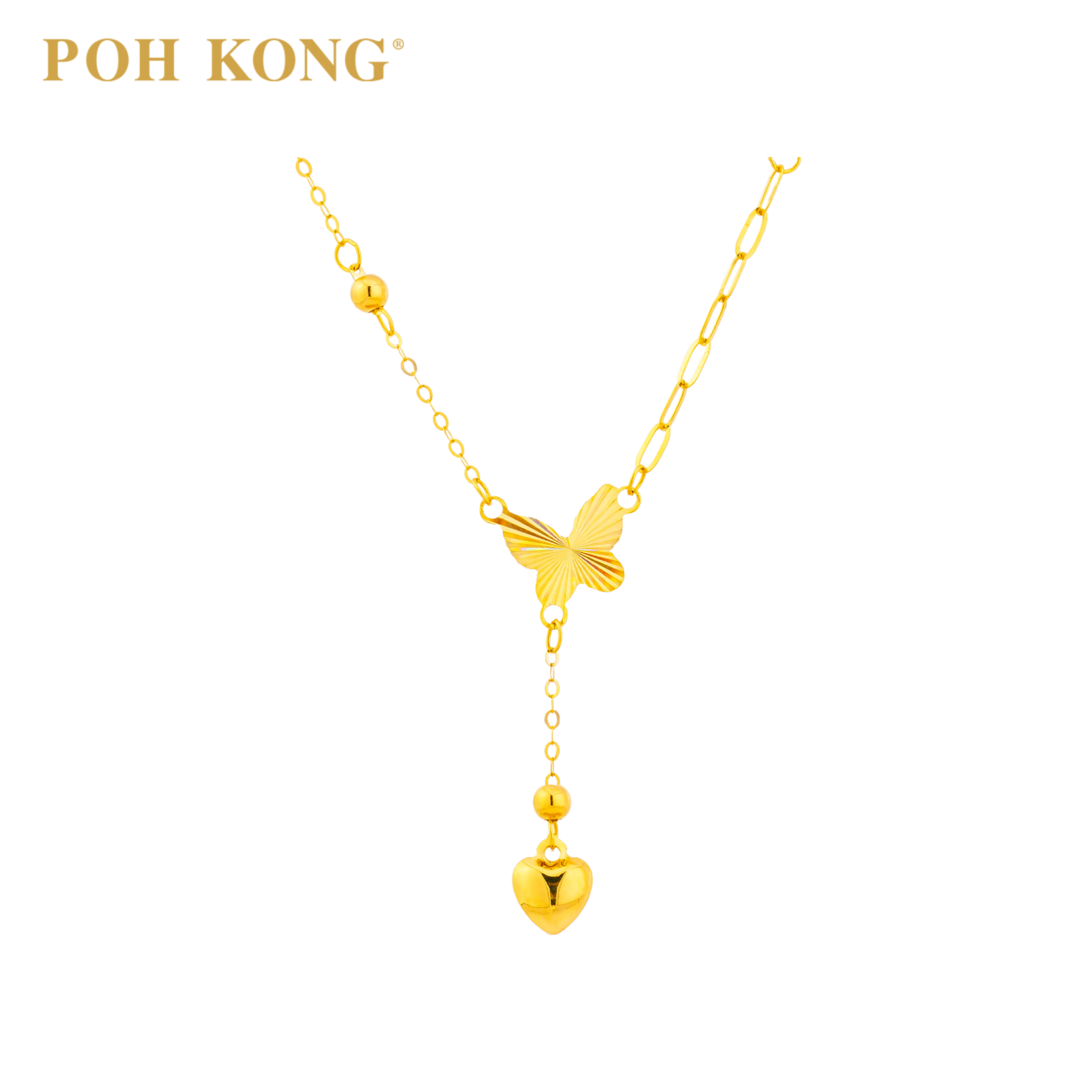 POH KONG 750/18K Yellow Gold Butterfly With Heart Shape Pendant Necklace