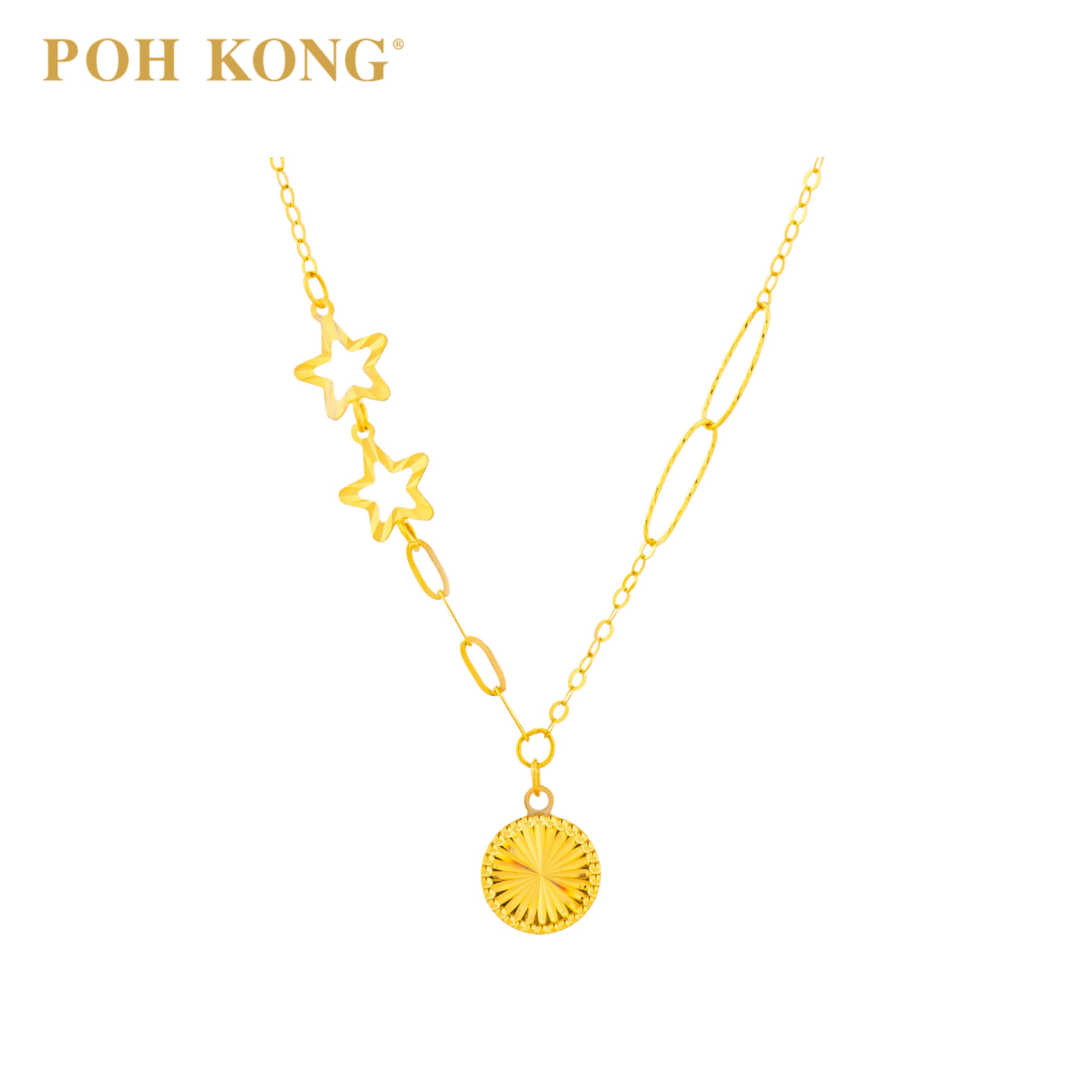 POH KONG 750/18K Yellow Gold Double Star With Textured Circle Necklace