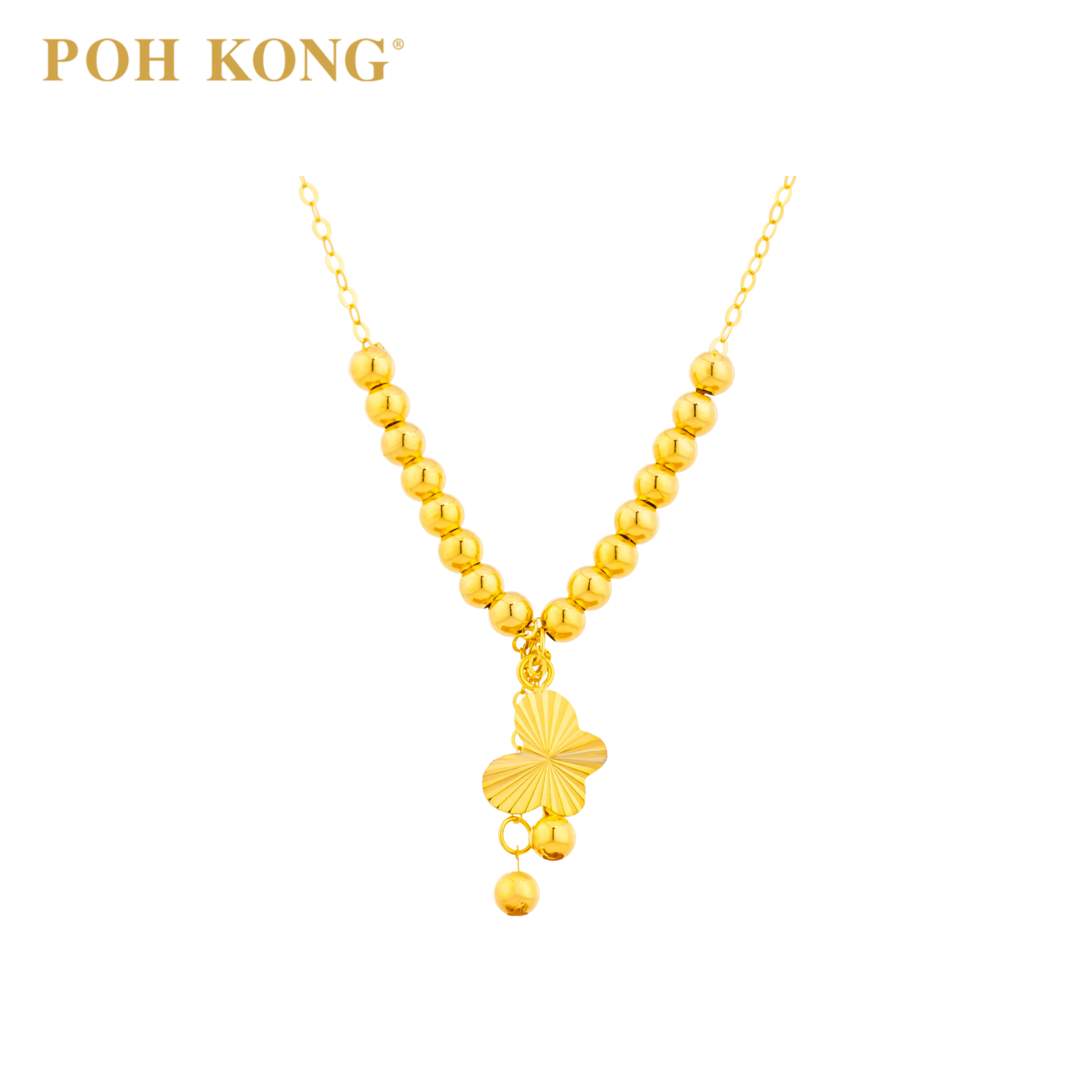 POH KONG 750/18K Yellow Gold Textured Butterfly With Beads Necklace