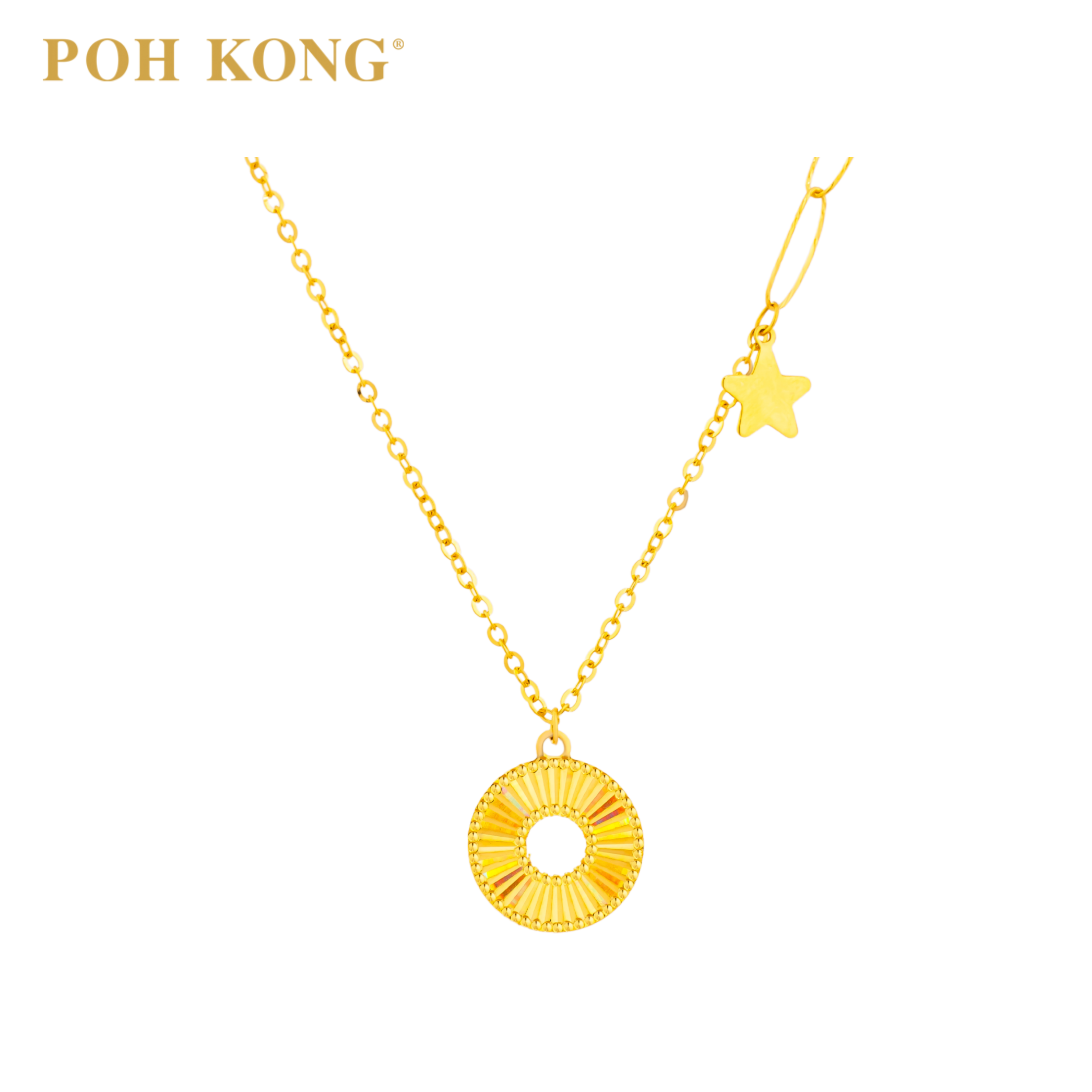 POH KONG 750/18K Yellow Gold Textured Circle and Star Necklace
