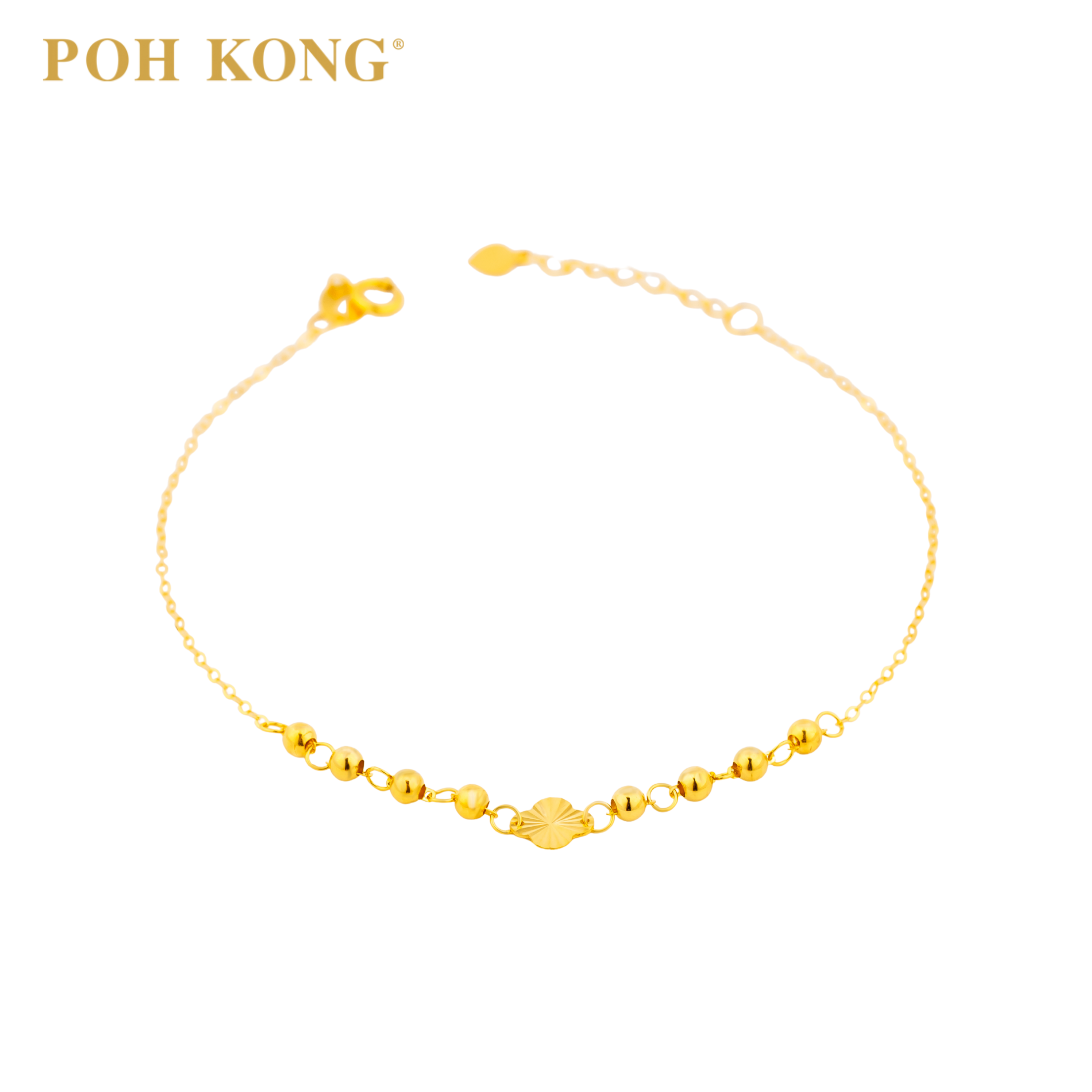 POH KONG 750/18K Yellow Gold Textured Clover With Beads Bracelet