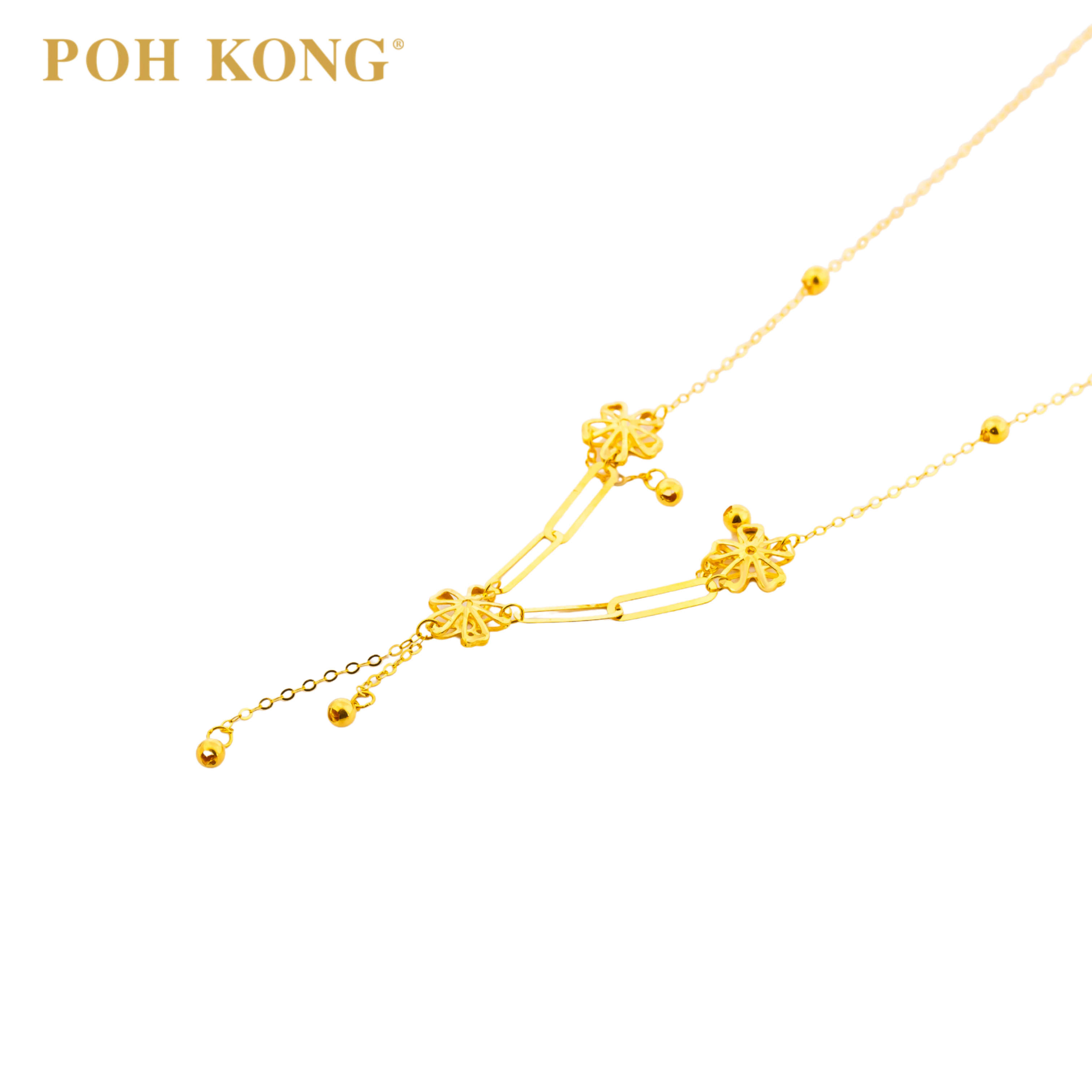 POH KONG 750/18K Yellow Gold Three Flower With Paper Clip Link Chain Bracelet