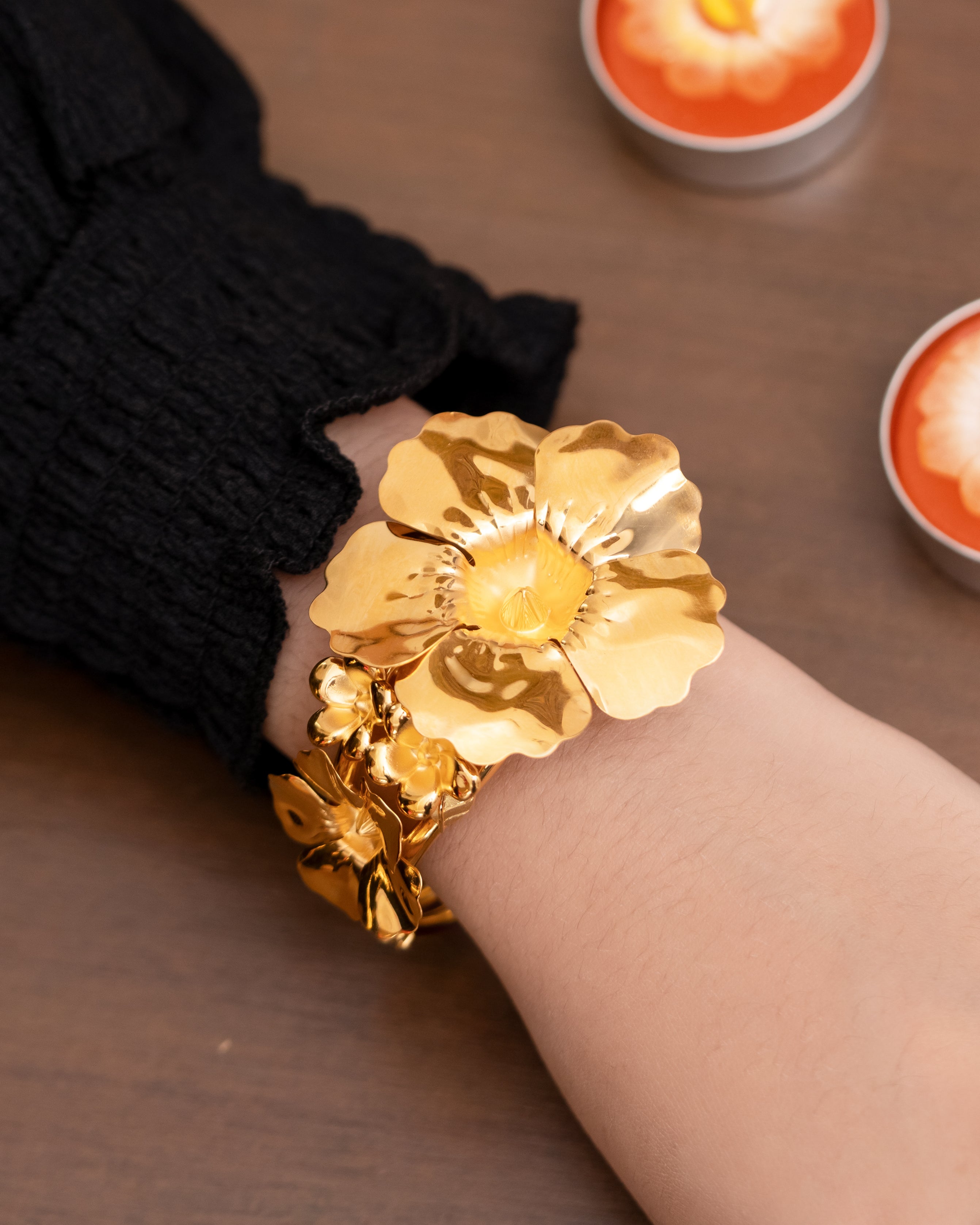 Hiasi pergelangan tangan anda dengan POH KONG Bunga Alamanda Gelang, emas 916/22K yang menampilkan motif Bunga Alamanda yang mekar penuh. Setiap kelopak direka dengan teliti untuk menangkap cahaya, memancarkan kilauan emas dari setiap sudut, menyerlahkan keanggunan, keyakinan, dan keceriaan wanita moden.