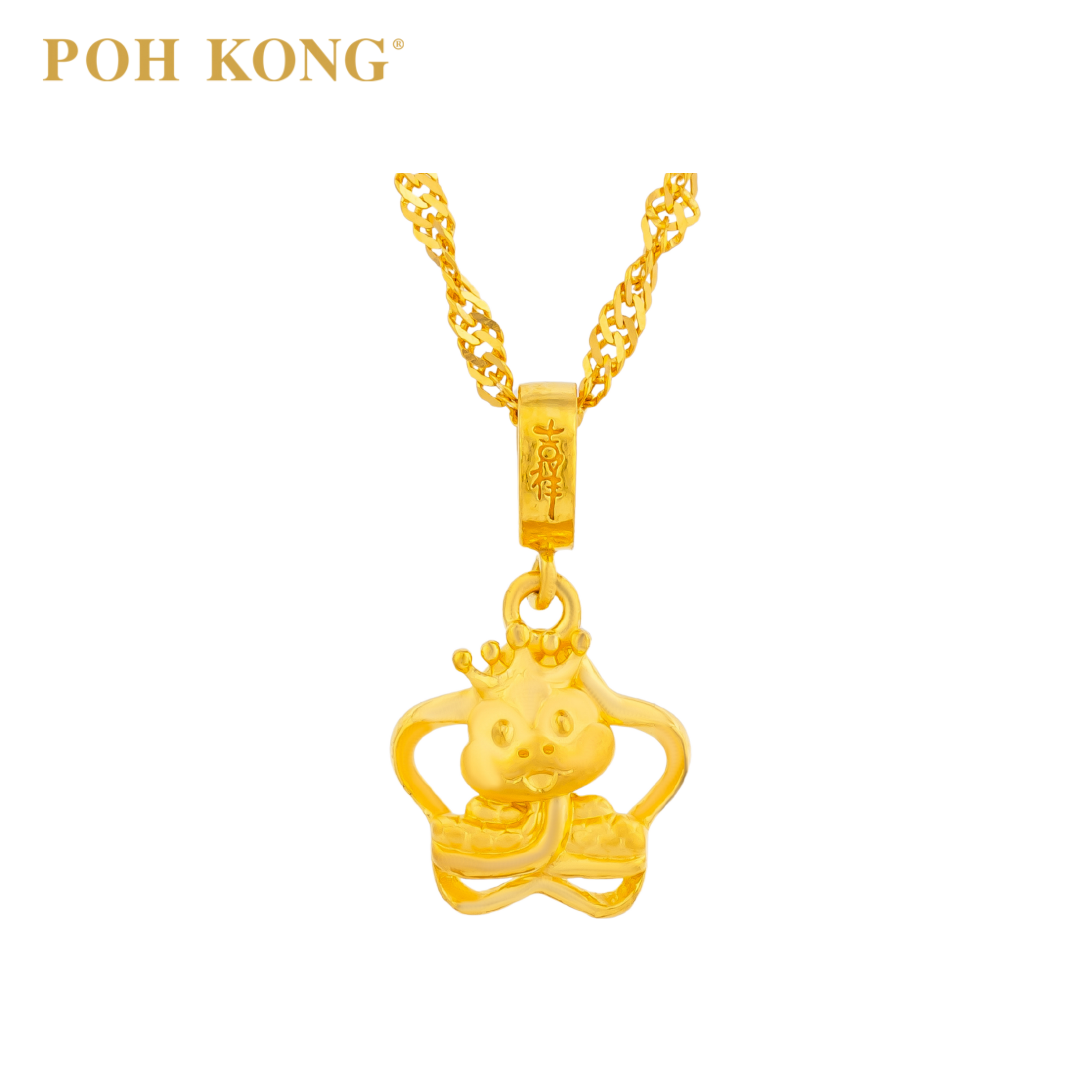 POH KONG 916/22K Gold Auspicious Golden Serpent Crown Pendant