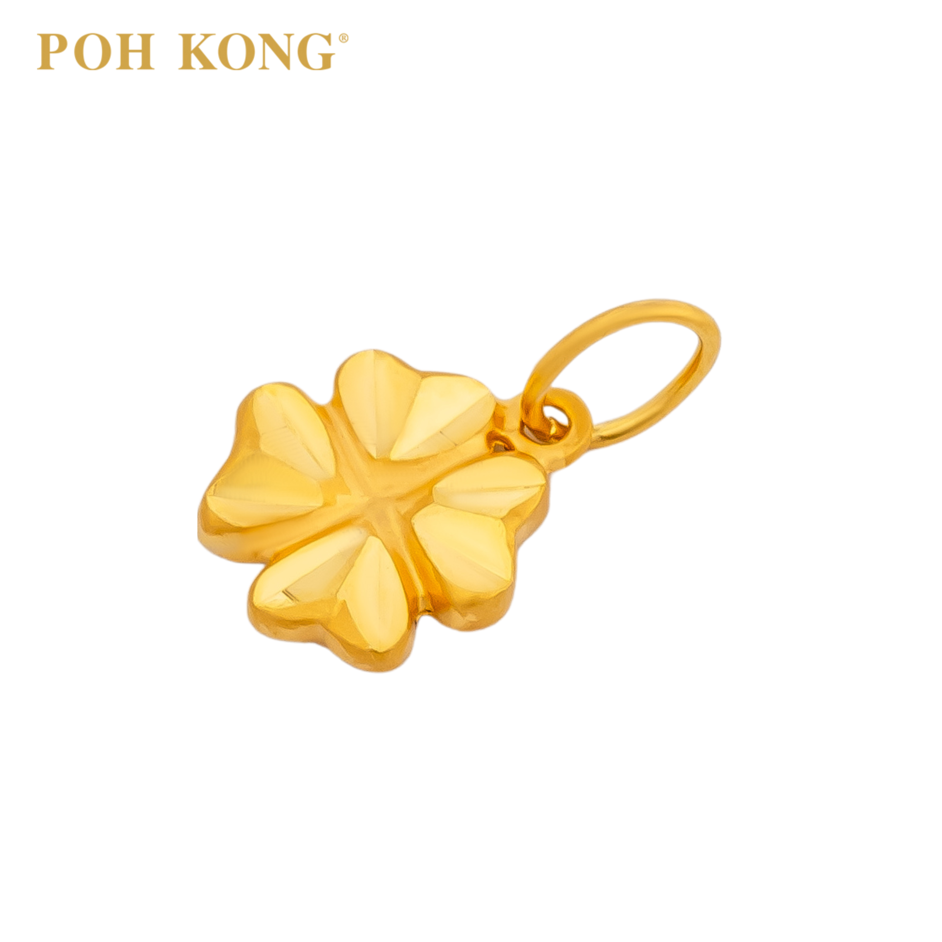 Poh Kong 916/22K Gold Carved Lucky Clover Pendant