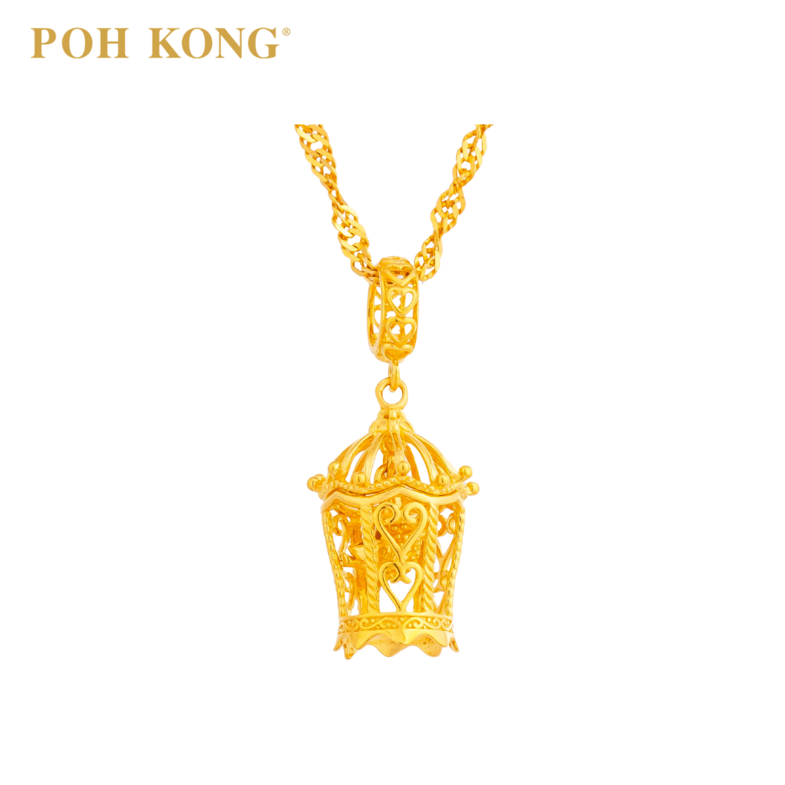 POH KONG 916/22K Gold Double Heart Pattern Birdcage Pendant
