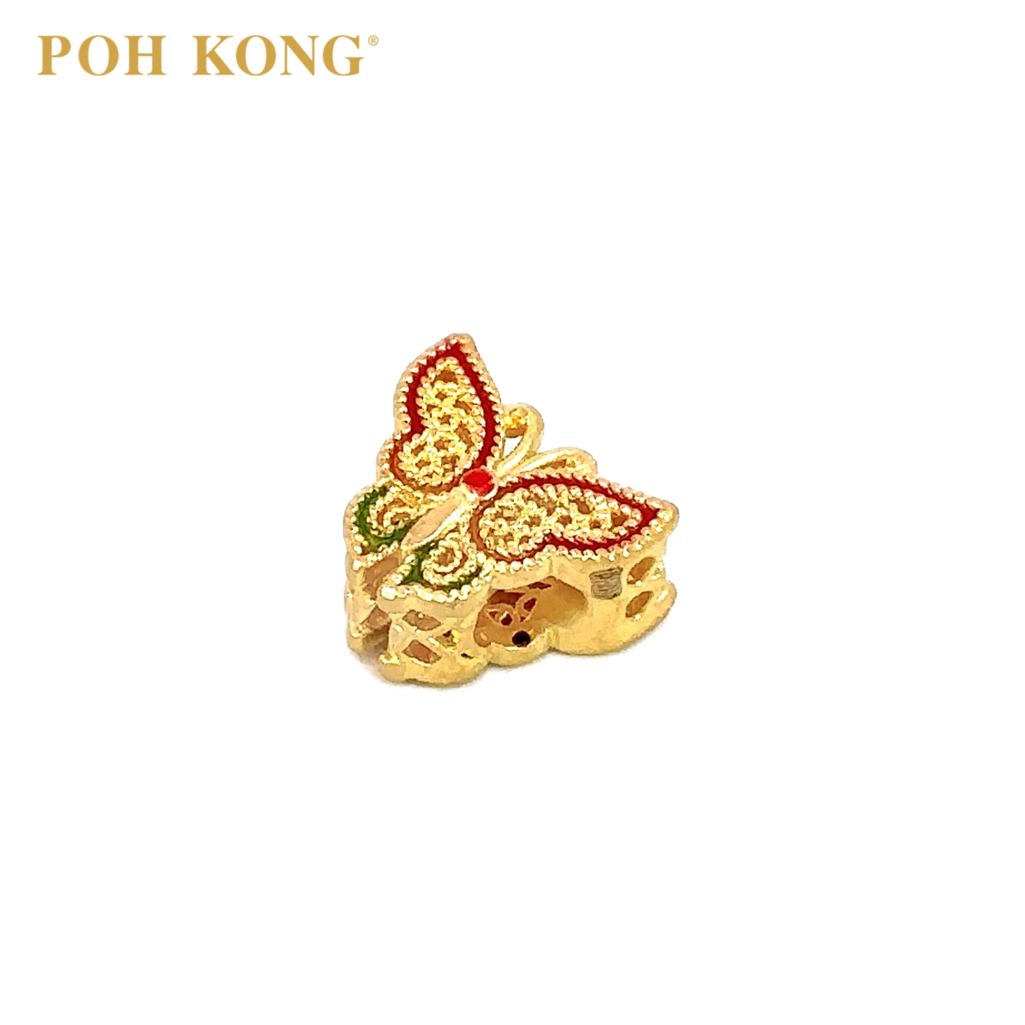 POH KONG 916/22K Yellow Gold Butterfly With Red And Green Enamel Pendant