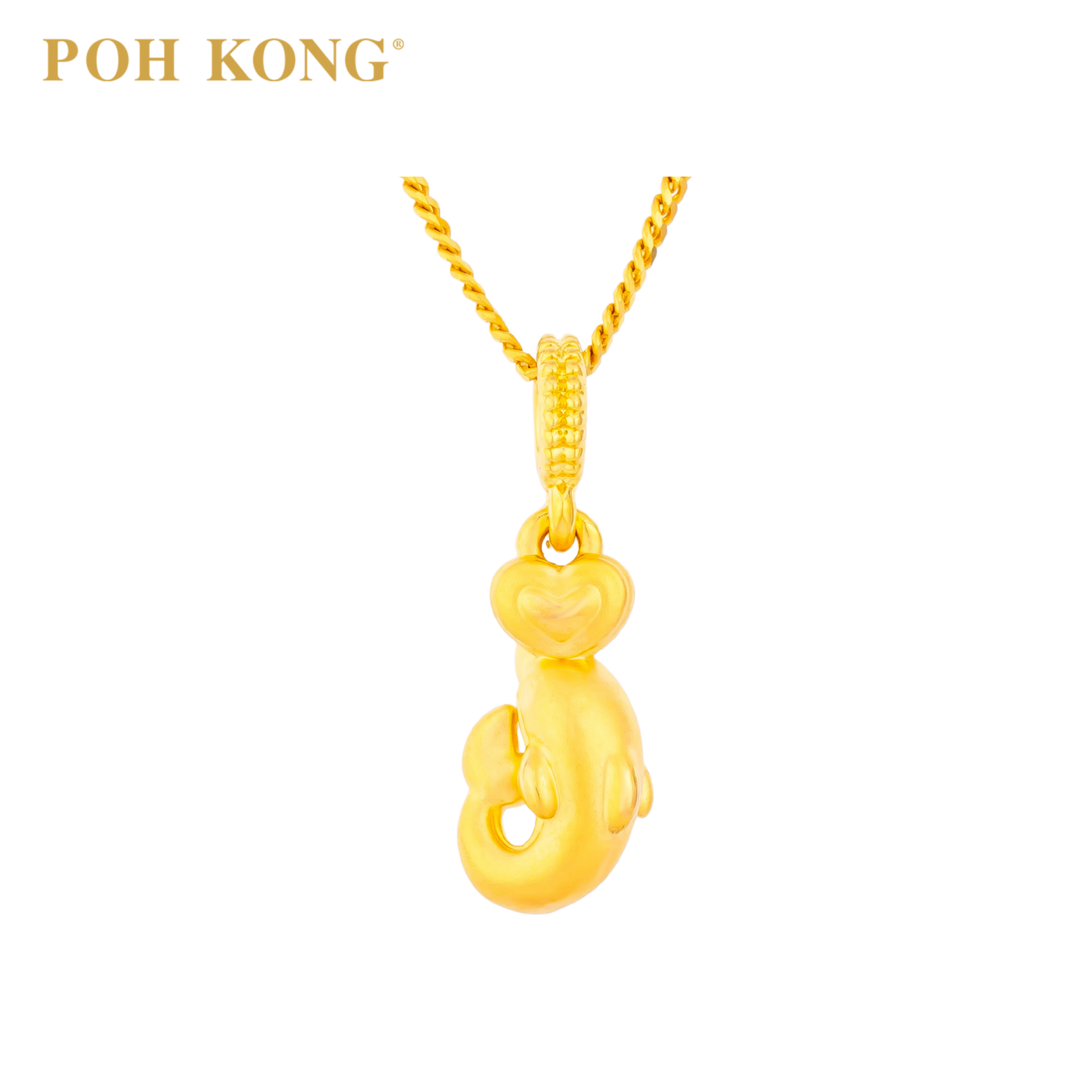 POH KONG 916/22K Yellow Gold Dolphin With Heart Shape Pendant