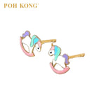 POH KONG 916/22K Yellow Gold Enamel Rocking Unicorn Stud Earrings