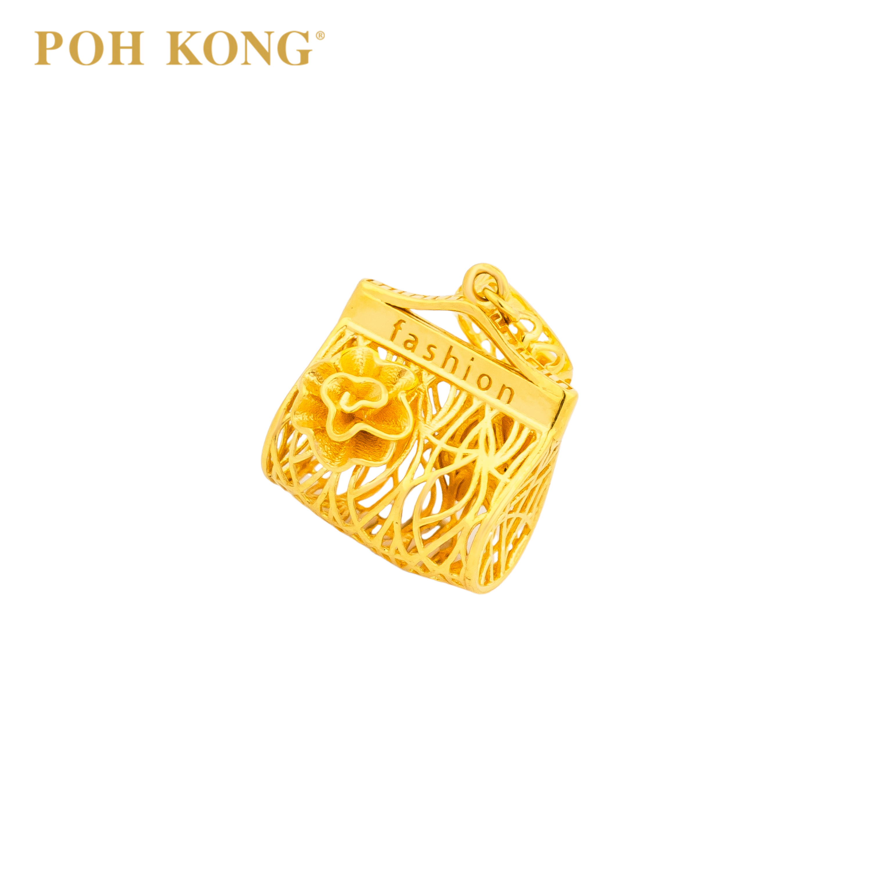 POH KONG 916/22K Yellow Gold Frame Handbag With Flower Pendant