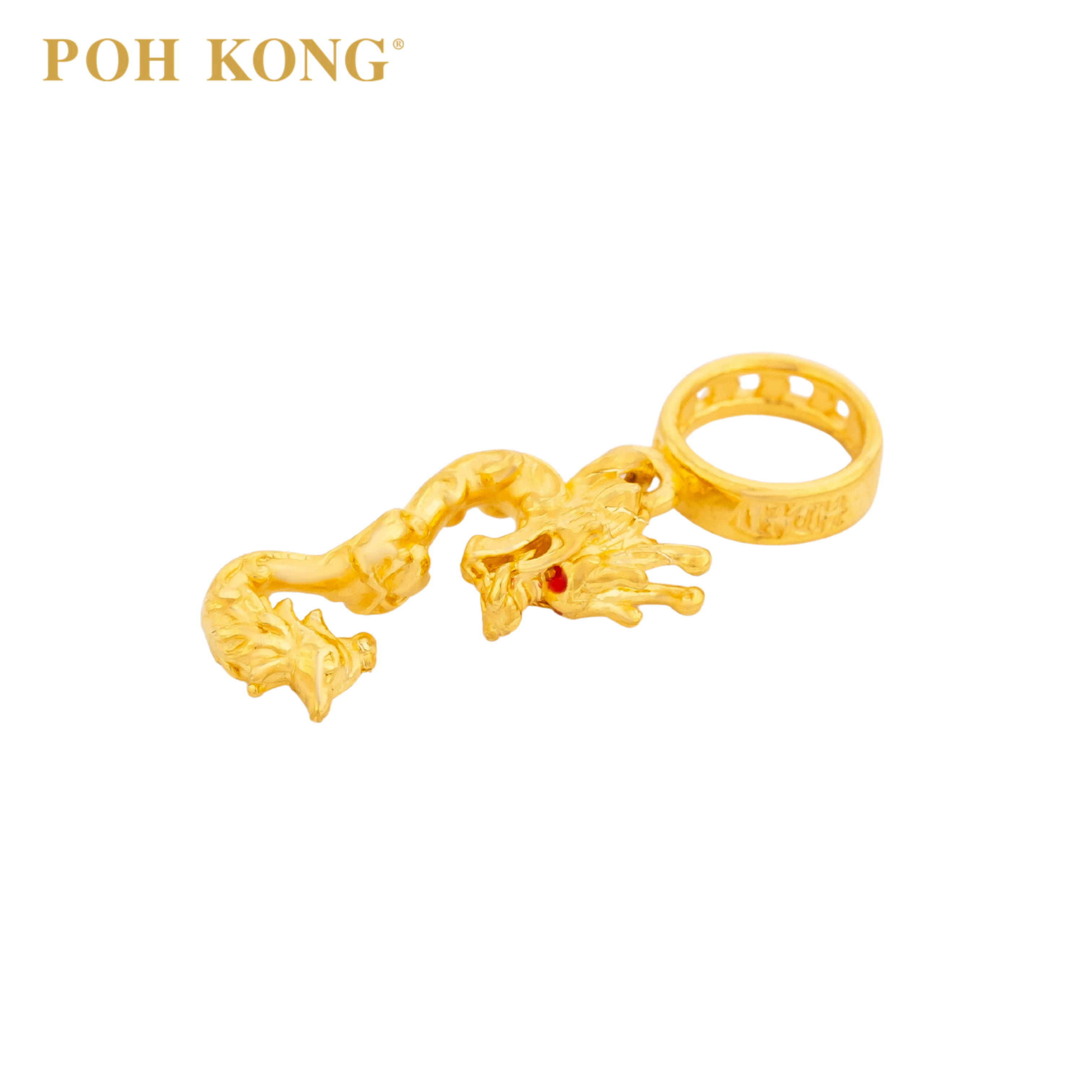 POH KONG 916/22K Yellow Gold Happy Love Dragon Charm Pendant