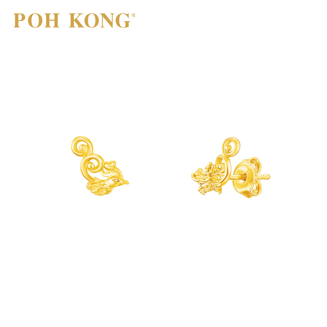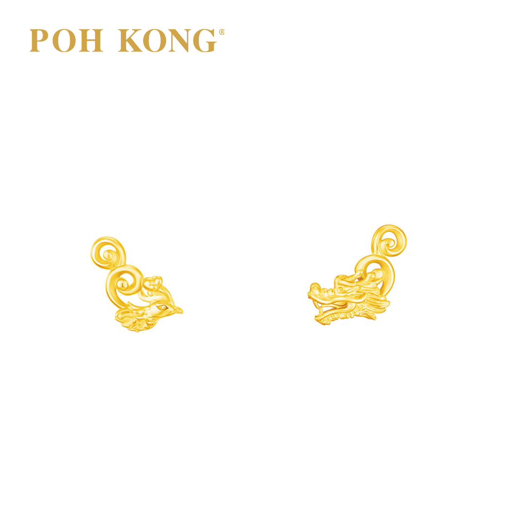 - POH KONG 916/22K Yellow Gold Happy Love Mini Dragon Phoenix Earring